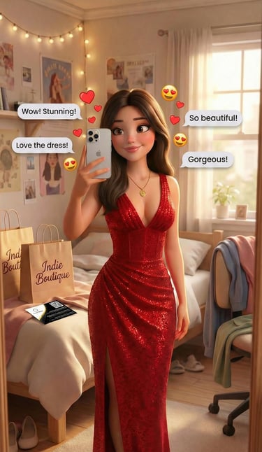 They share later — when they’re at home, trying the outfit on again, styling it differently, or asking friends, “What do you think?”