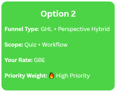 1️⃣ Choose your preferred funnel option(s) (Option 2 recommended)
