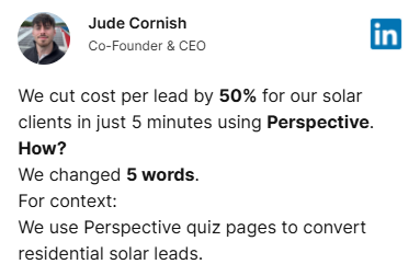 We are big fans of Perspective due to the conversion performance being exceptional.