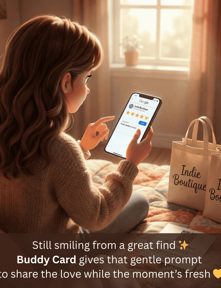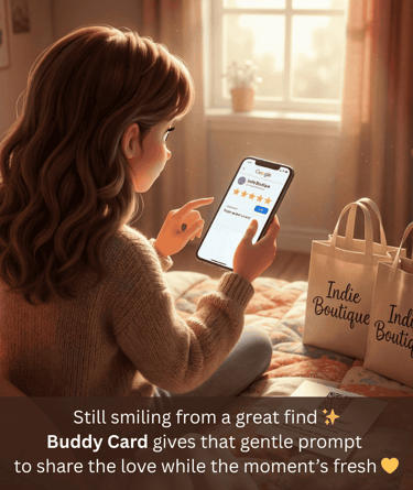 Buddy Card lives in these moments with your retail business in the mix and a tag for friends to follow