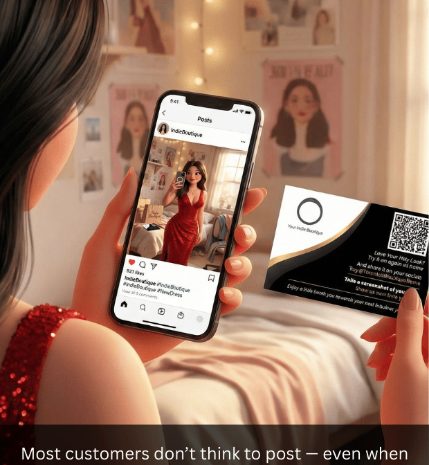 But among the larger majority are customers who would happily share and tag you — with a small nudge, at the right moment, and a simple thank-you.